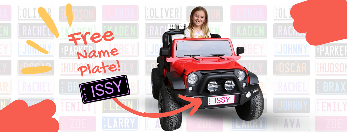 Make their ride on car truly theirs with a free custom number plate included with every purchase. Just add their name or nickname and their first first set of wheels is officially theirs!