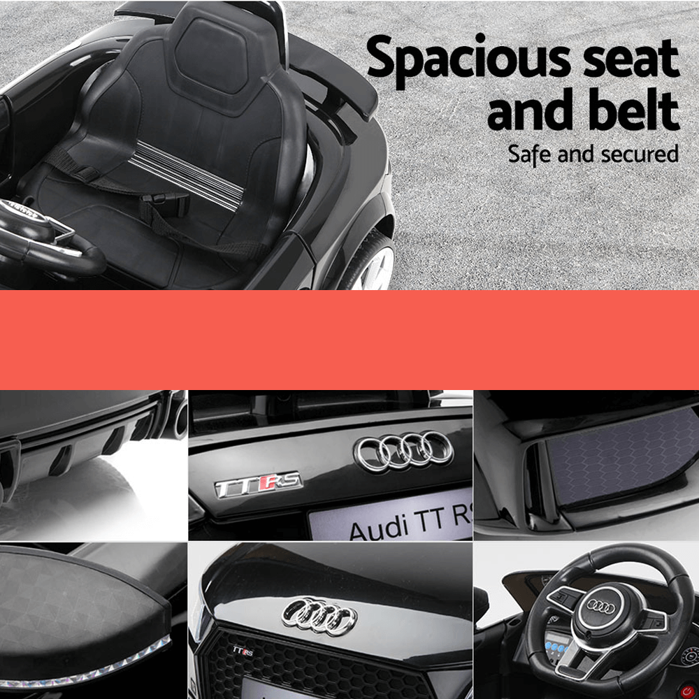 Officially Licensed Audi TT RS Roadster Licensed Black 12v Ride-On Kids Car for Ages 3-8