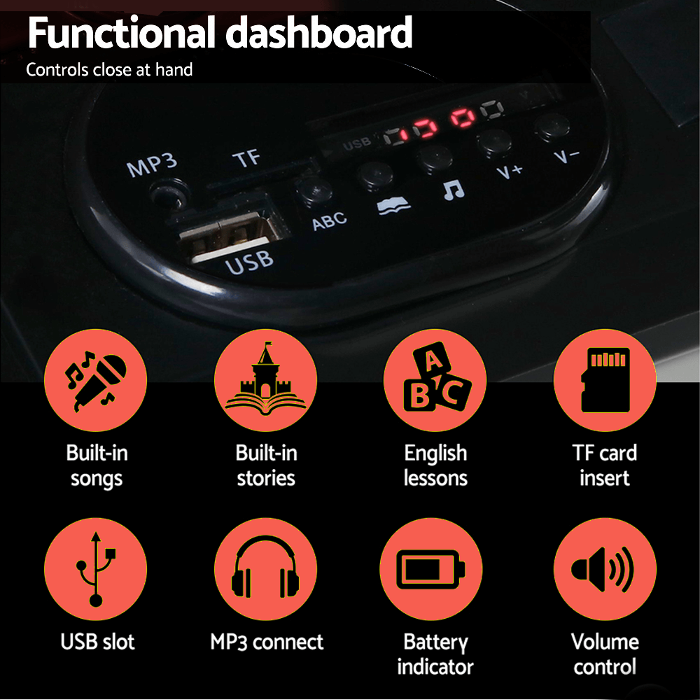 The Bentley EXP12 car is built with meticulous attention to detail and is every bit as luxurious and impressive as the real thing. Open the gullwing doors and your child is welcomed with a superb dashboard of convenient controls: keyless start, motion switch, speed control, horn, lights and even MP3 connectivity to supplement the built-in music and stories that will keep your child entertained for hours.