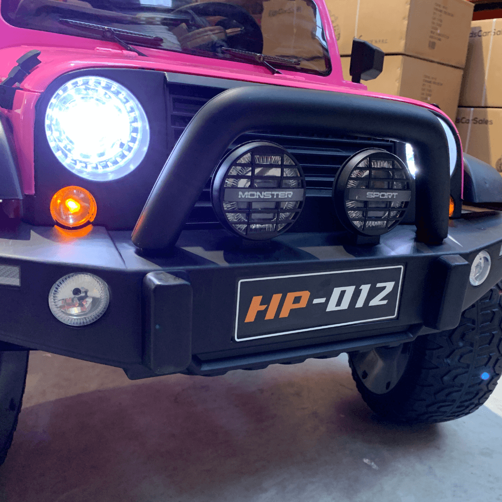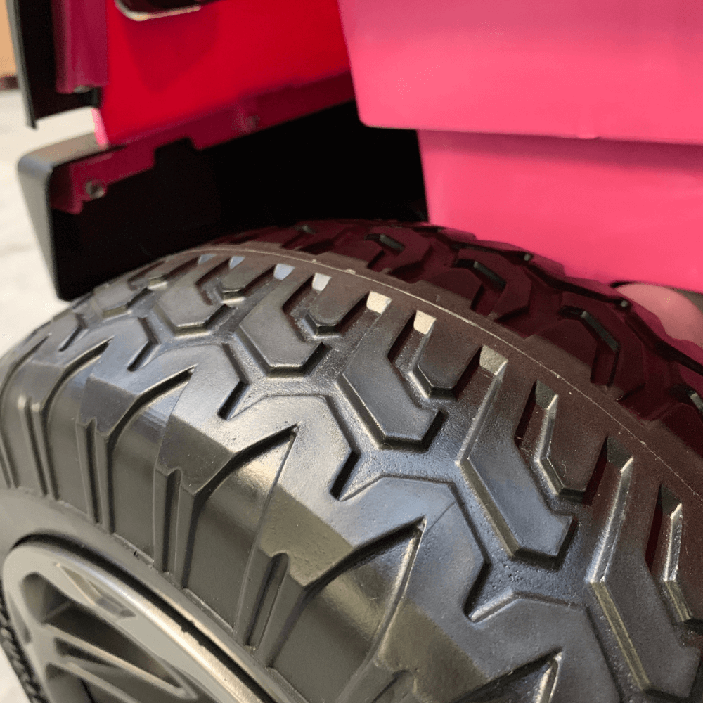 Grab the sunnies and get outside with the bubblegum pink kid-sized Jeep inspired ride on kids car. Complete with big high-grip rubber tyres, upgraded drive motors and a bigger battery, this 12v ride on is ready to navigate any rugged backyard terrain!