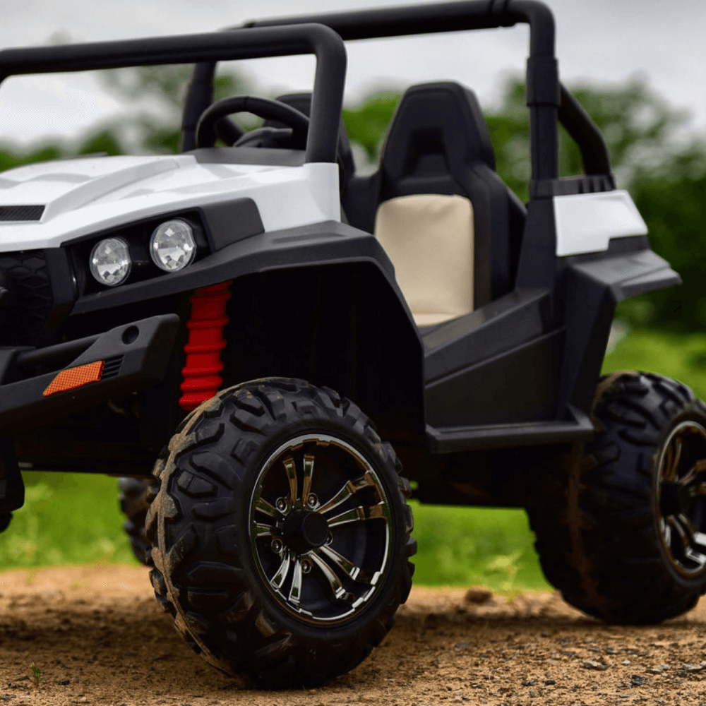 Let the adventure begin for your child in their very own kid-sized UTV ride on kids car. With big 35.5cm rubber tyres, upgraded drive motors and twin batteries this powerful beast is ready to tackle the toughest backyard trails!