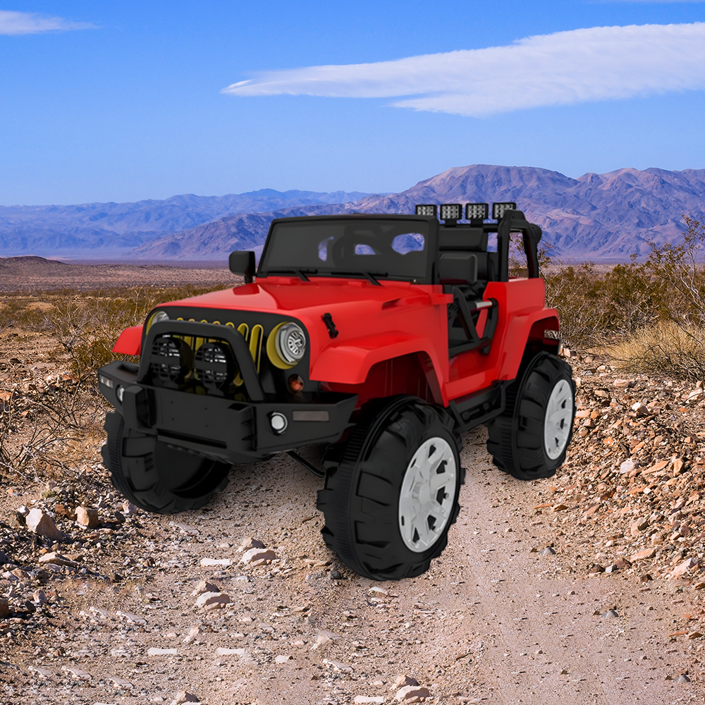 Transform your child's playtime with the Go Skitz 12v Jeep Wrangler Inspired Ride-On Kids Car - Red. Packed with exciting features, it's perfect for little adventurers aged 2 to 4 years. Don't miss out on giving your child the joy of a thrilling and safe ride.