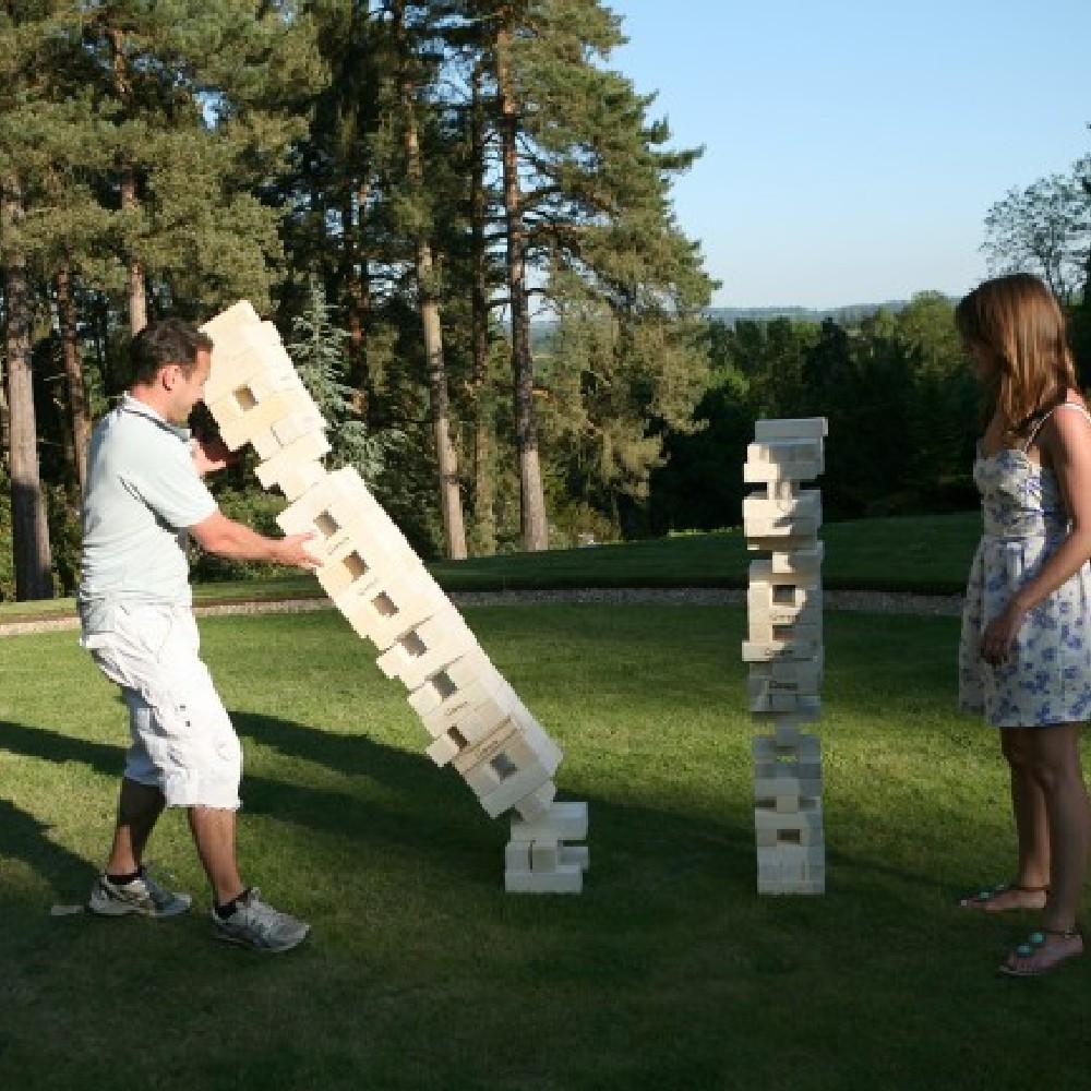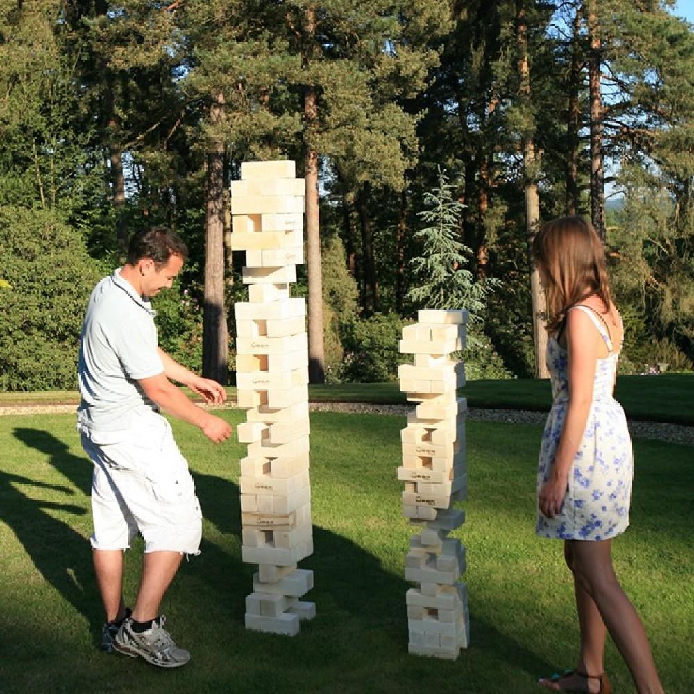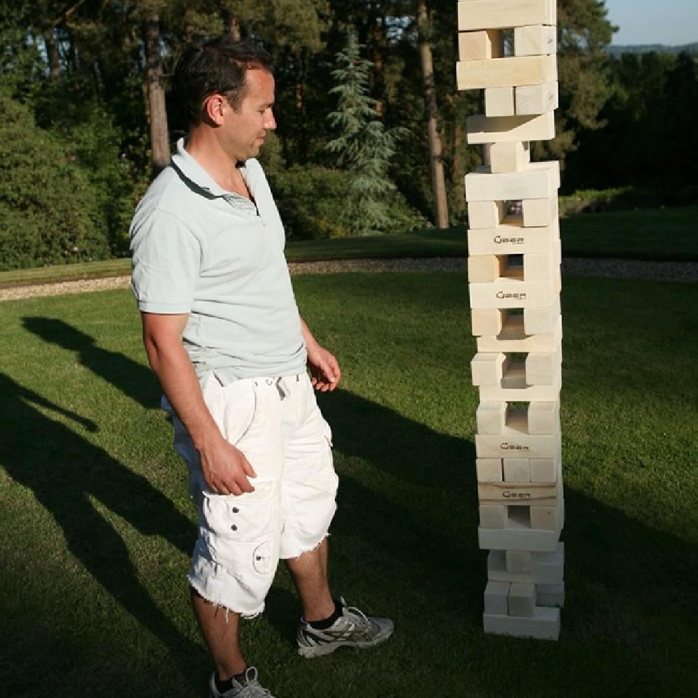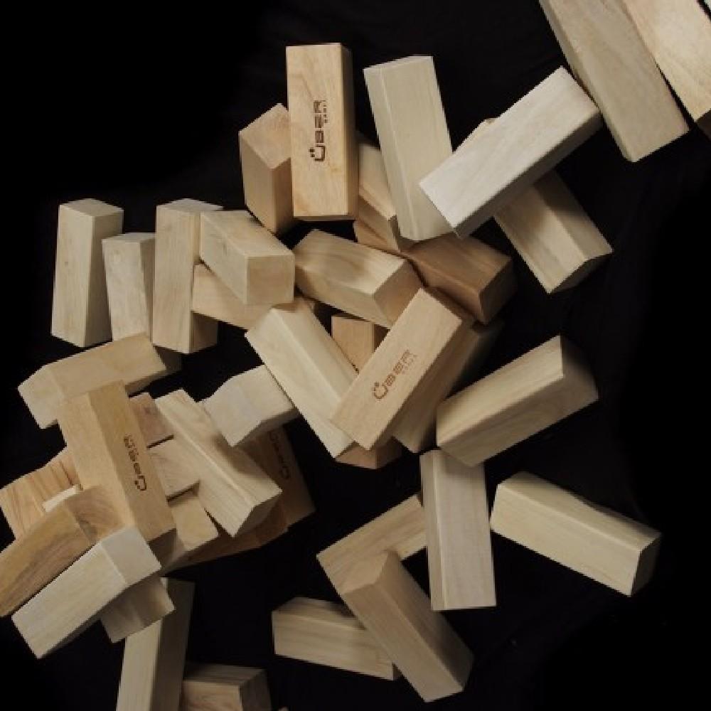 Throw a great yard party with these really large tumbling blocks. Crafted from hardwood, they are sturdy and strong. Lightweight, they are easy to manage, making them ideal for stacking games like Jenga. Suitable for all ages, these blocks will provide hours of fun at picnics, birthday celebrations and family reunions. This set also comes with a heavy-duty duffel bag with sturdy handles for easy transport.