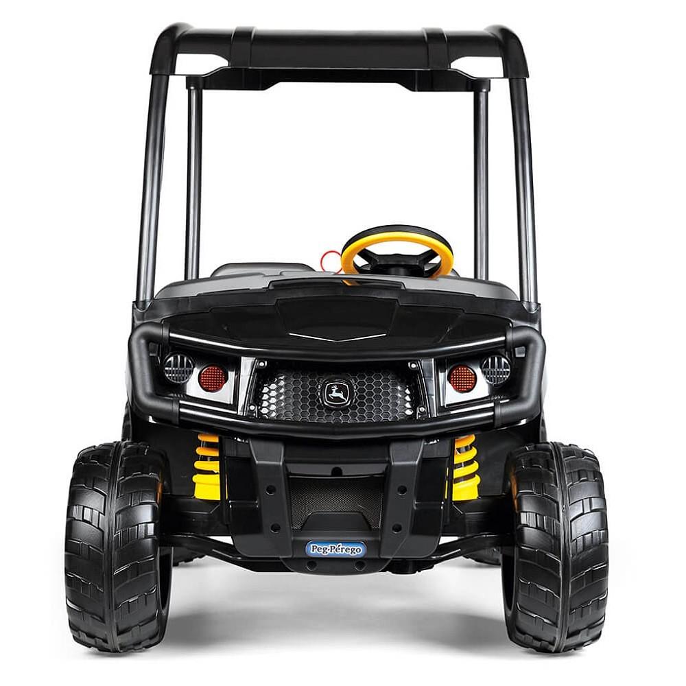 Young drivers (and parents) will love the adjustable seats of the John Deere Midnight Black Gator XUV, which keeps growing legs comfortable. The super traction wheels let kids travel over grass, dirt, asphalt and other terrains.