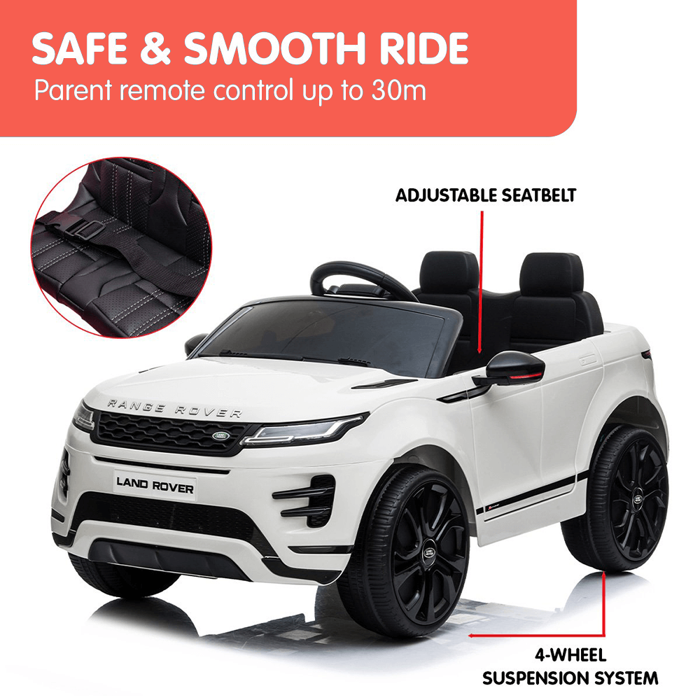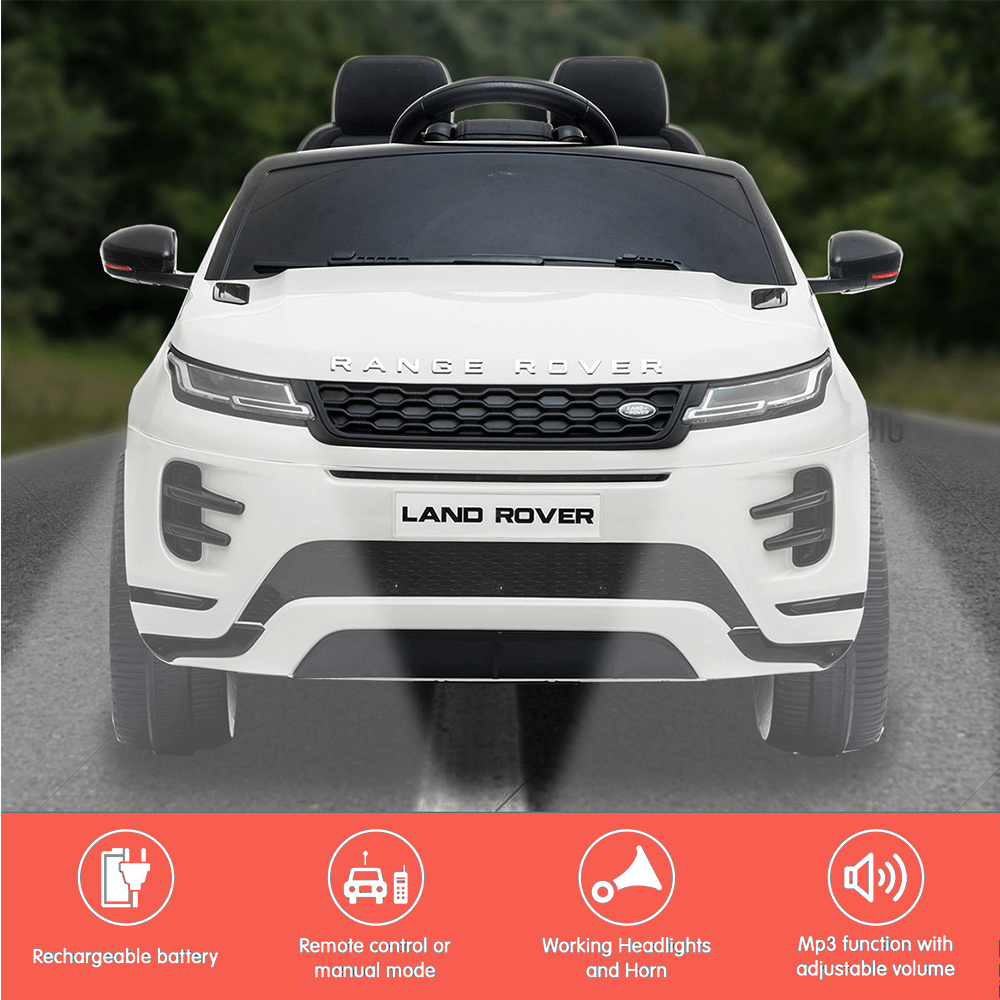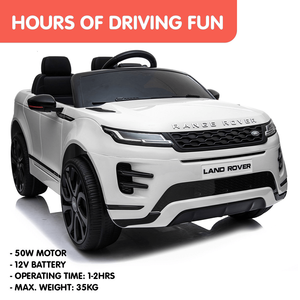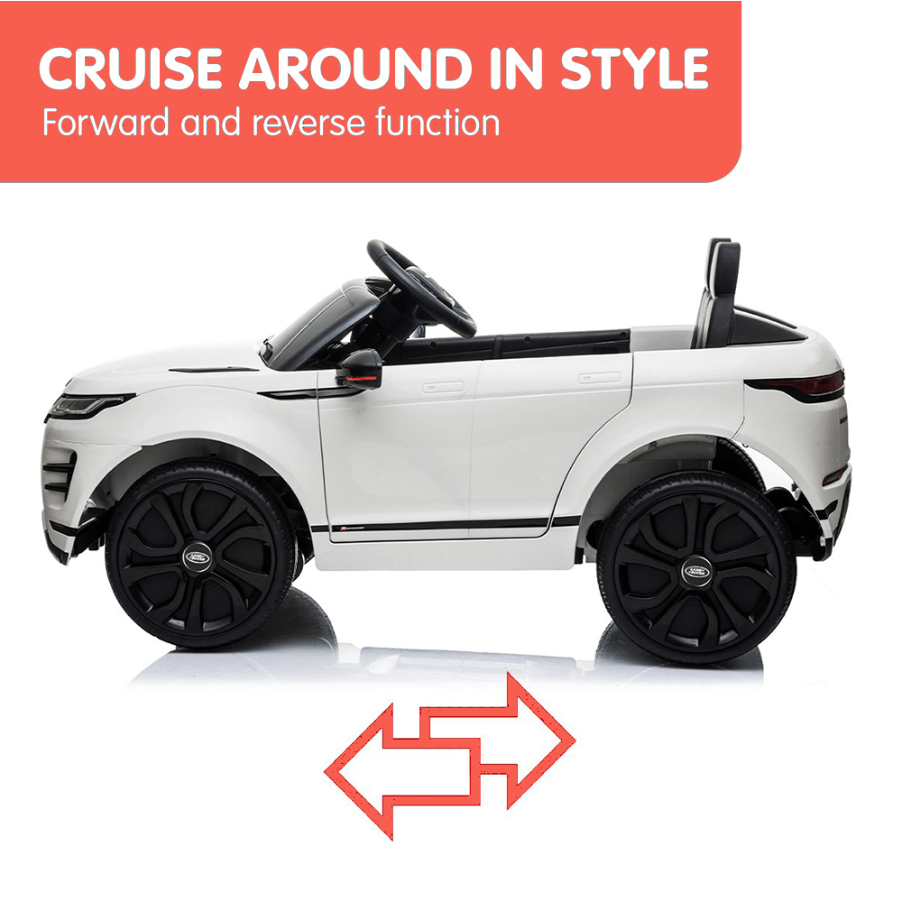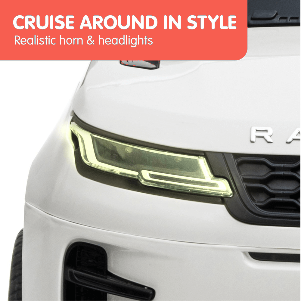Ignite your child's spirit of adventure with the Kahuna Licensed Land Rover 12v Kids Electric Ride-On with Remote in dazzling white! Set them on an exciting journey of exploration with this dynamic Range Rover Evoque replica, designed to inspire endless adventure and active play.