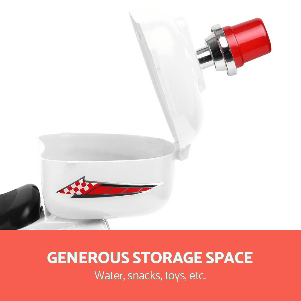 Fun but safe, this 3-wheel ride-on motorbike will provide your little one with hours of outdoor fun and adventure. It offers a smooth ride with tons of style. To give it an extra-sporty look, its all white body is designed and covered in numerous colourful and exciting decals.