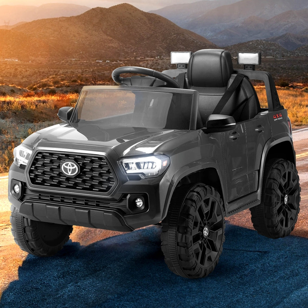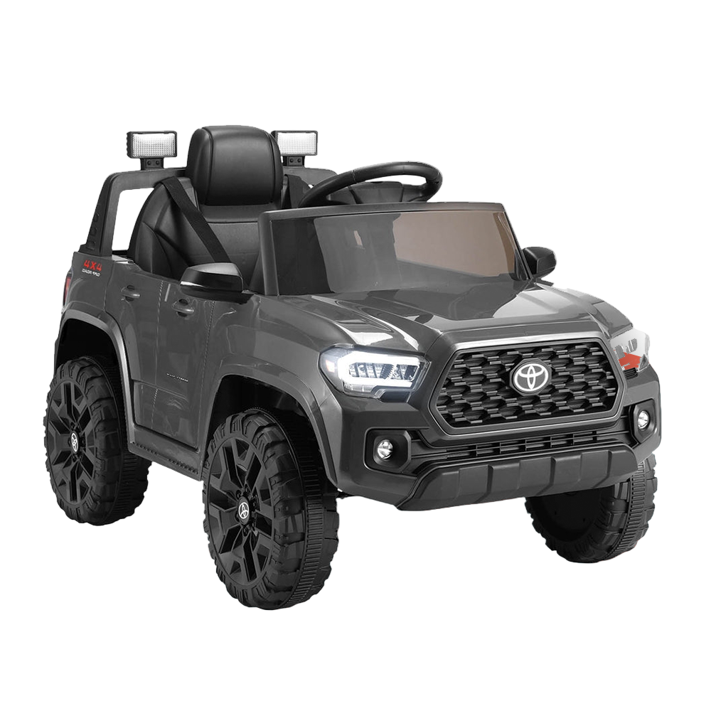 Get ready to fuel your child's sense of adventure with the Licensed Toyota Tacoma Off Road Jeep 12v Kids Electric Ride On Car with Remote in sleek grey.