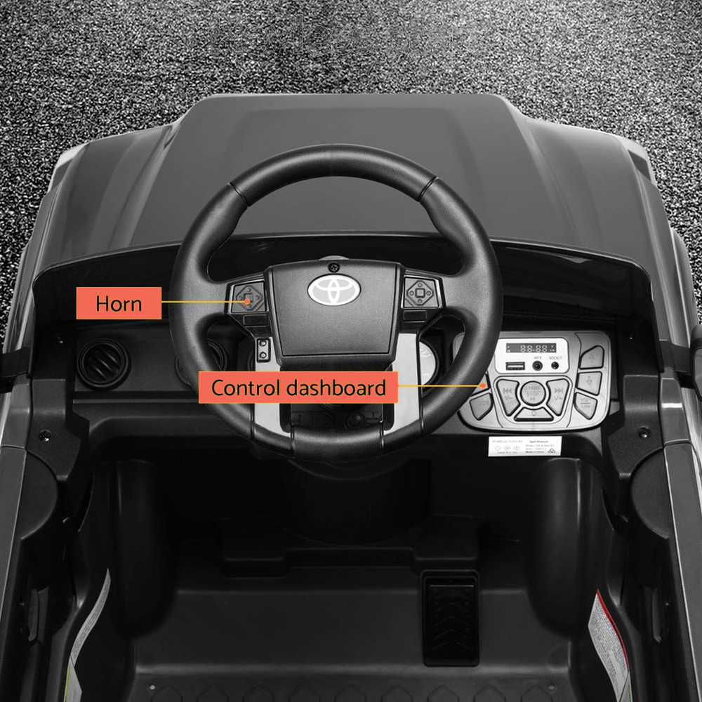 Equipped with a realistic steering wheel and acceleration pedals, the Toyota Tacoma gives your child full control over forward and reverse movement, providing an authentic driving experience.