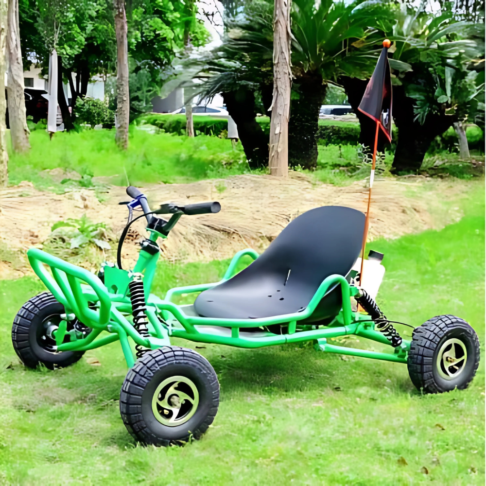 MJM 63cc Green Go Kart for Teens – All Terrain 4-Wheeler with Power, Grip and a Bold Off-Road Look