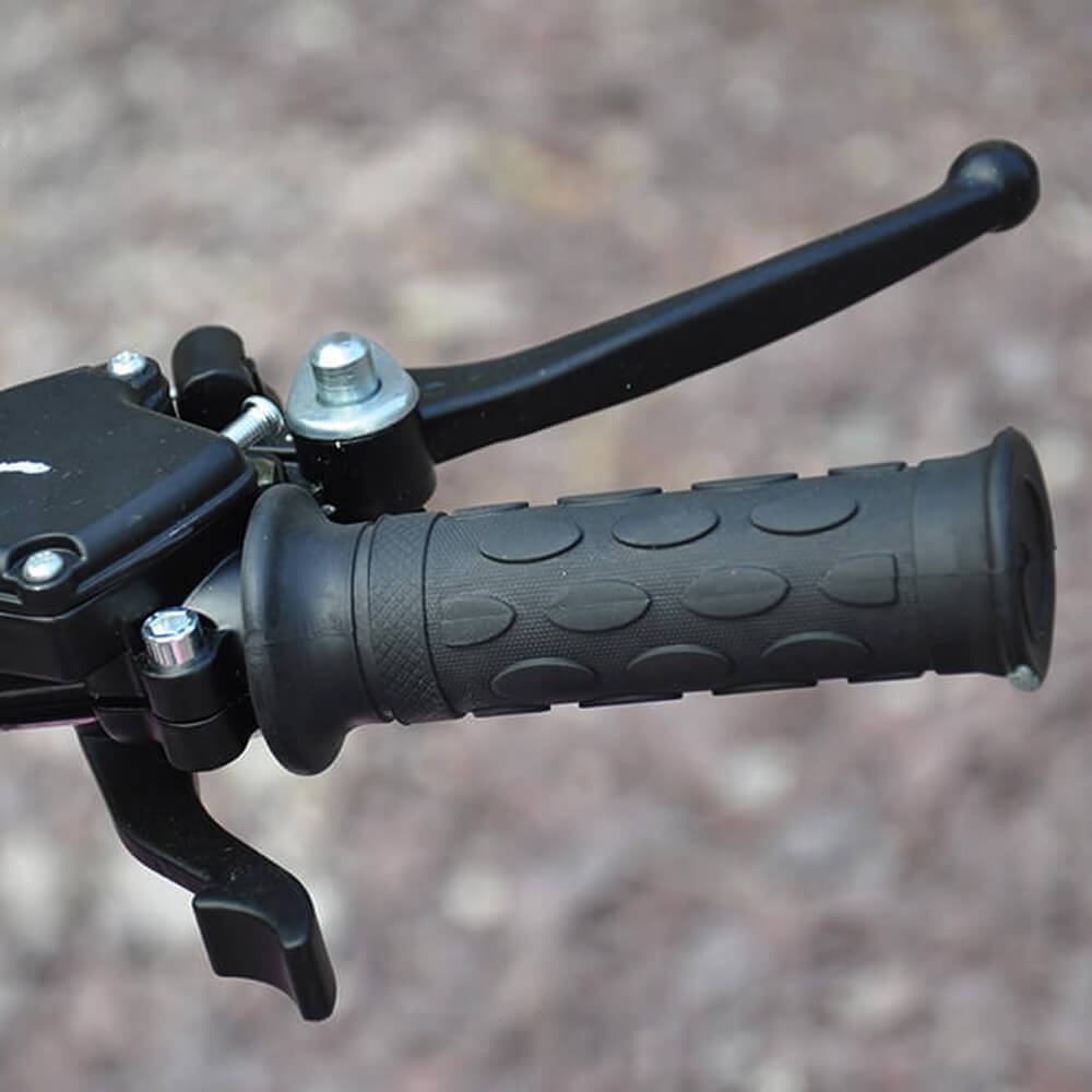 - Thumb lever throttle control with limit screw and single speed gear-less operation