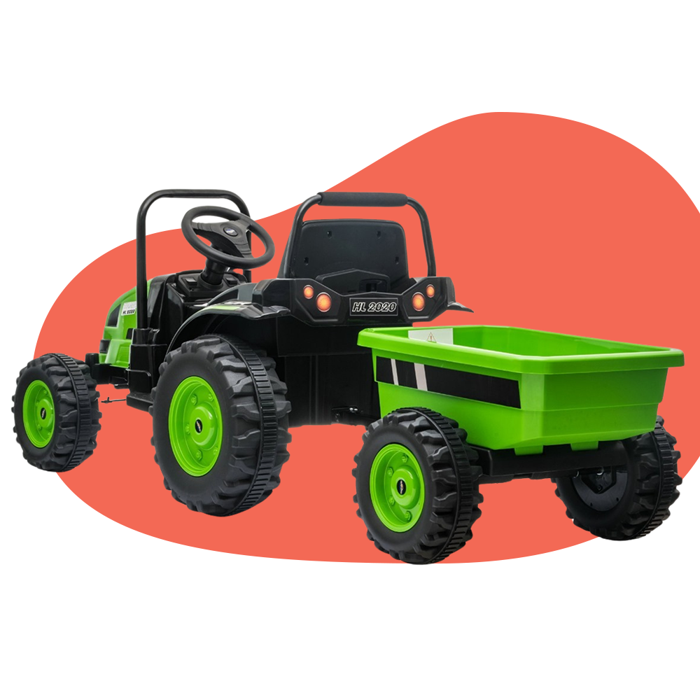 Equipped with two powerful 35W motors and a rear trailer, it allows little farmers to haul toys, transport treasures, or help with pretend farm work.
