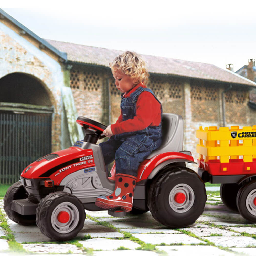 The Peg Perego Tony Tigre is a pedal-powered ride on kids tractor designed to engage your child in healthy outdoor play in a fun and creative way. This chain driven tractor is suitable for children from 2 years upwards and is ideal to encourage your child to spend carefree hours outdoors pedalling and pretending to be a real farmer.