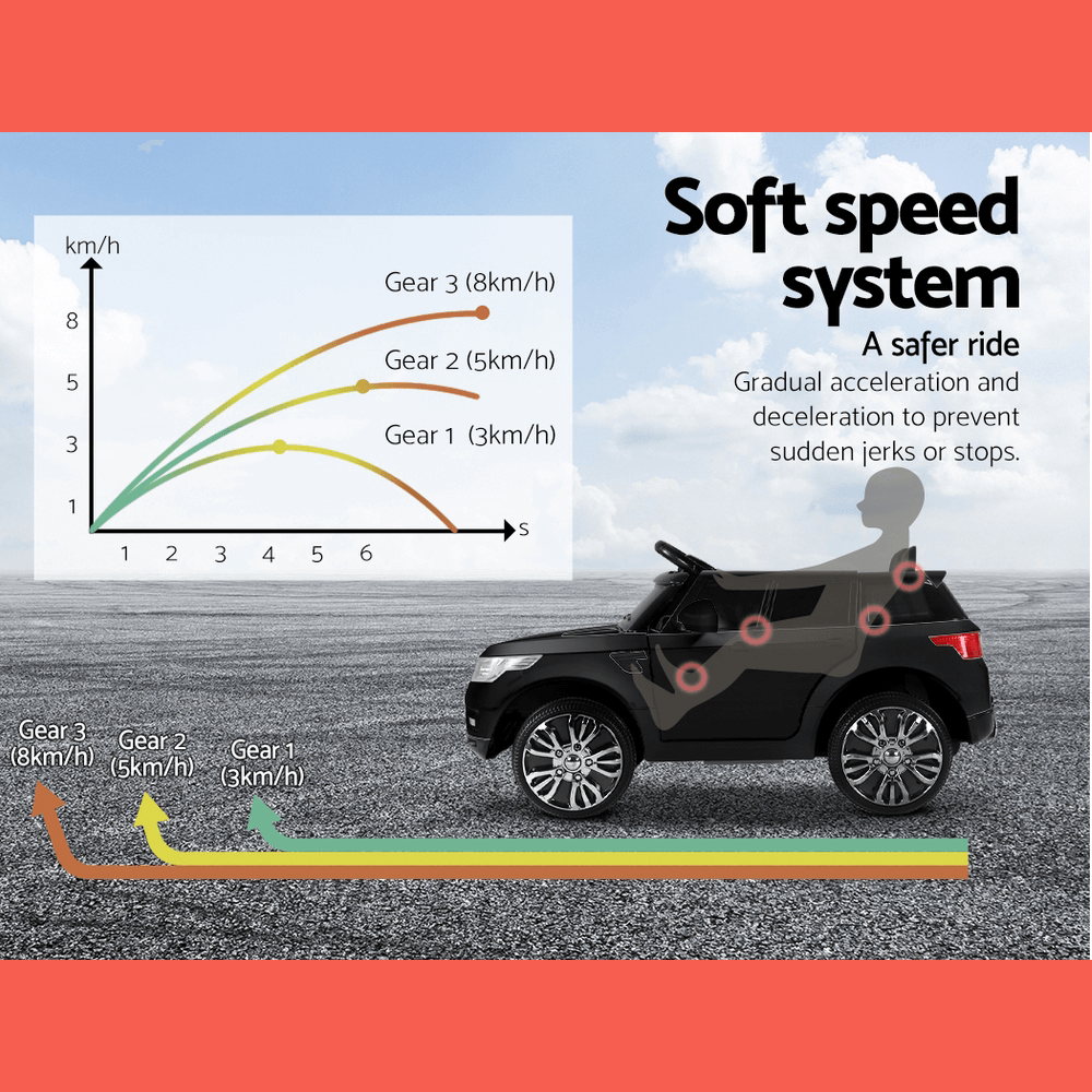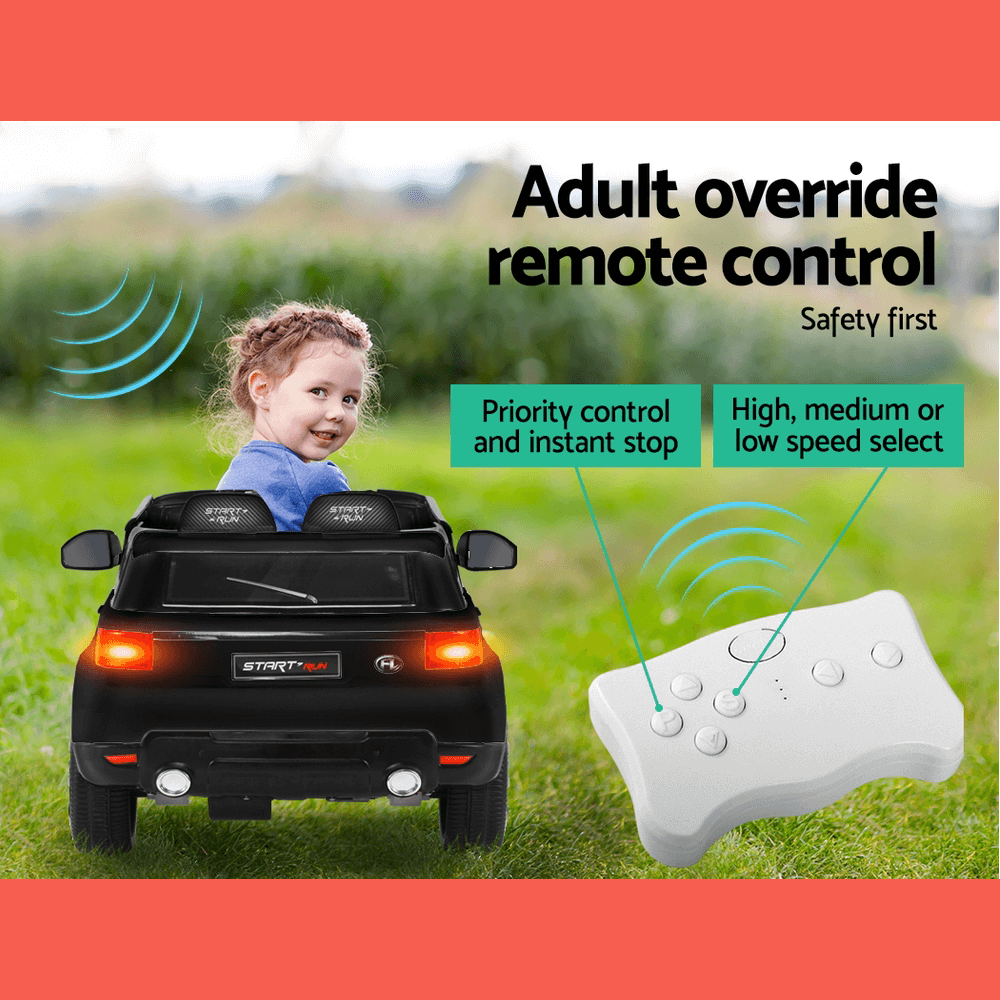 Back in black! Your little one will feel really strong and confident in this sporty black Range Rover ride-on kids car, best suited for small children and toddlers.