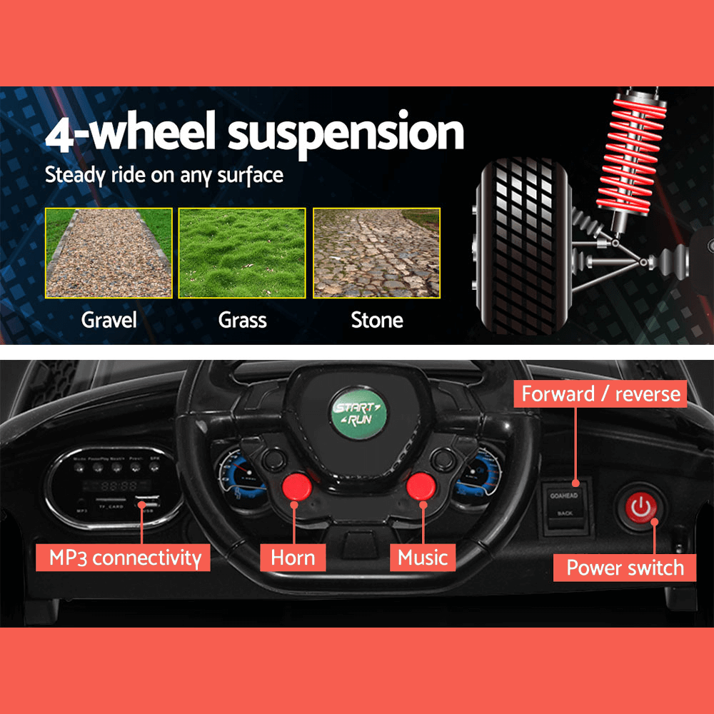Rigo Kids Electric 12v Sports Ride-On Kids Car - Black