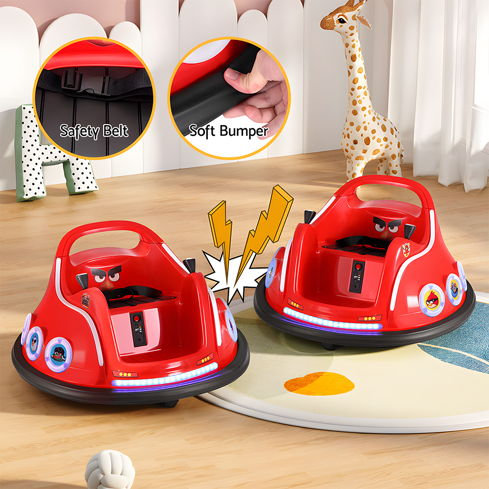 30W Red Angry Bird Inspired 6V Electric Bumper Ride On Car for Ages 3+ with 360-Degree Rotation and Remote Control