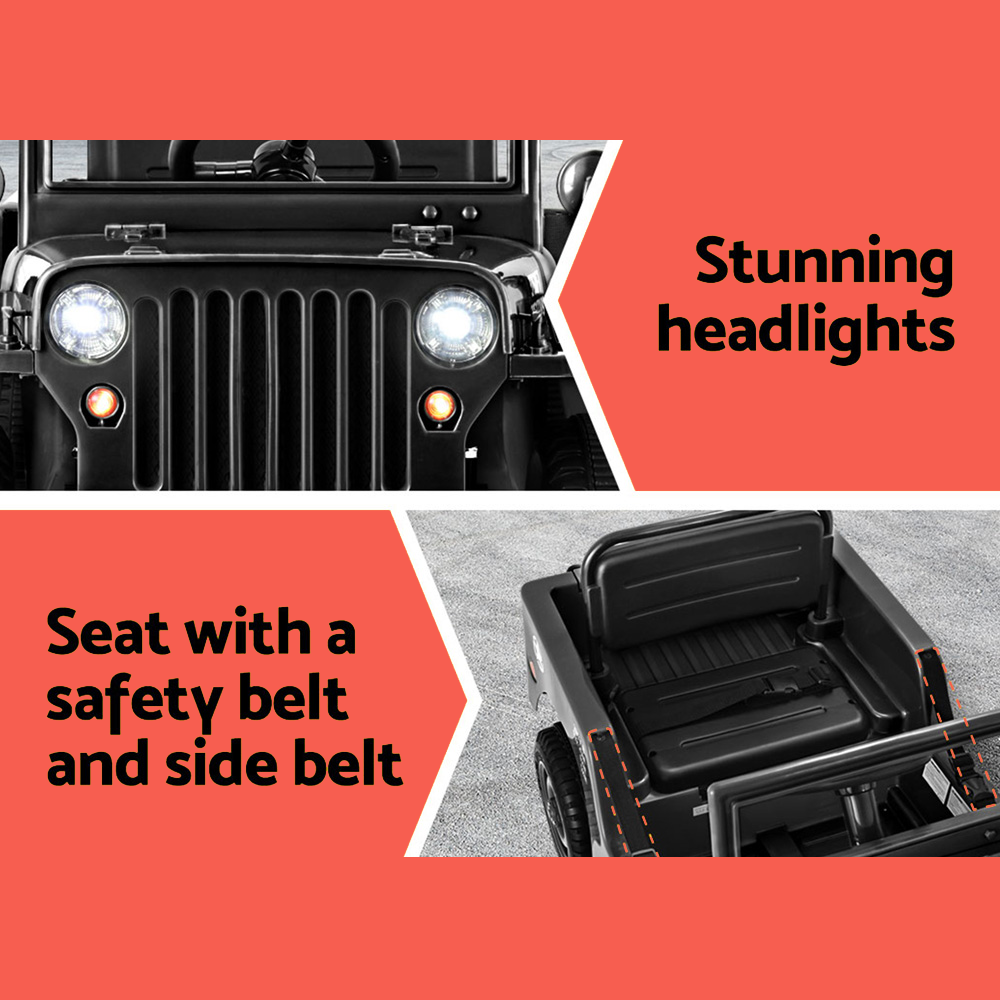 Rigo 12v Kids Military Jeep Off Road Ride On Car with Remote - Black