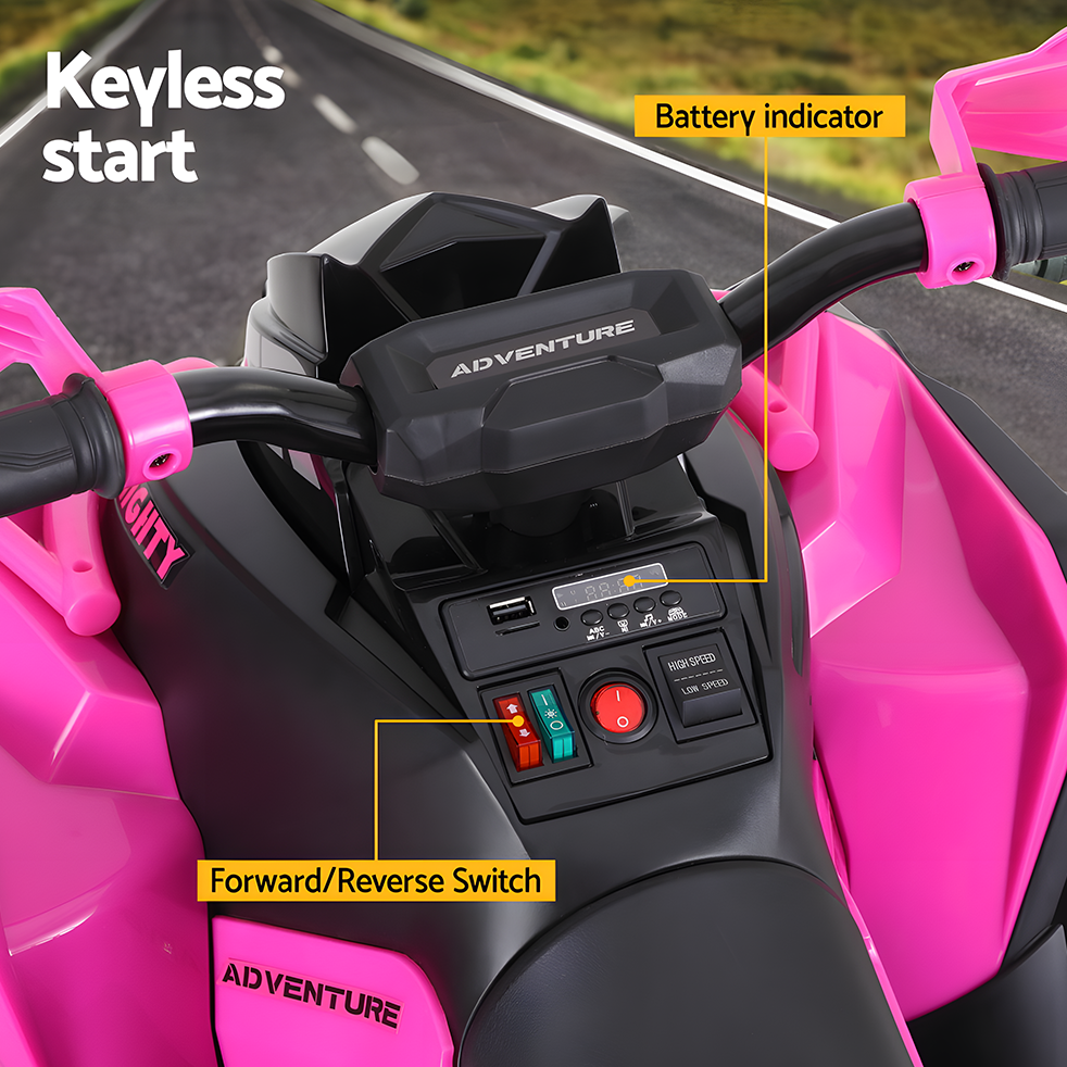 Adventurous Twin Motors Rigo Kids ATV Pink Ride-On with Built-In Music Player