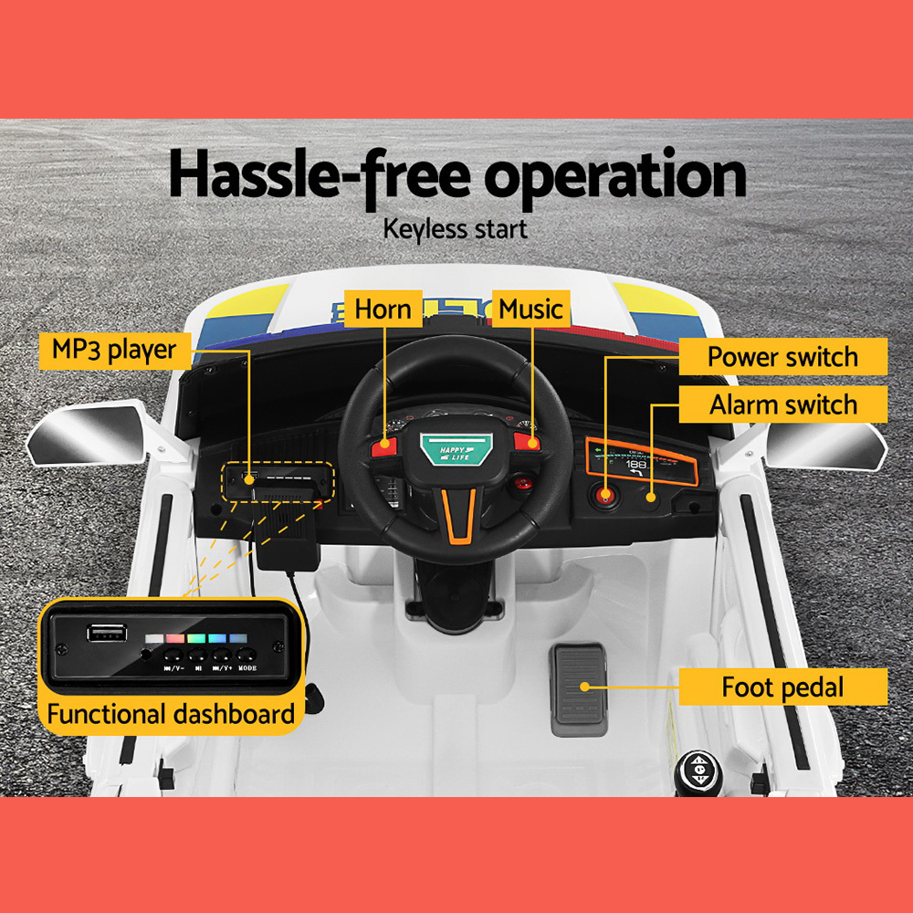 Rigo 12v Kids Electric Police Patrol Ride On Car with Remote - White